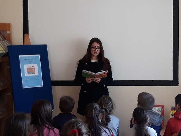 No dia 5 de fevereiro, pelas 14h30m, a Coordenadora da Biblioteca Escolar e a Professora Elisabete Alves receberam a Maria Martins, irmã de uma aluna da turma B do 3º ano, no âmbito do Projeto “Leituras Carinhosas. A obra escolhida foi “A galinha dos ovos de ouro” e contou com a presença de todos os alunos da turma, que se maravilharam com a interpretação da nossa jovem convidada.