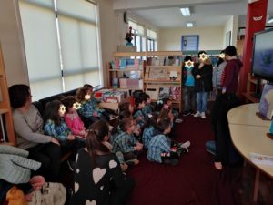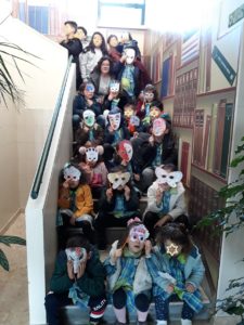 No dia 18 de fevereiro, pelas 10h30m, os alunos do pré-escolar e a Educadora Filipa Borges visitaram a Biblioteca Escolar. Foram recebidos pela Professora Ângela Bastos e alguns alunos do 5ºA que dinamizaram a apresentação de um tutorial sobre os cuidados a ter com o livro e com a leitura do livro “O Pequeno livro do bom comportamento”, de Christine Coirault. No decurso da leitura, efetuou-se um paralelismo entre a história e o funcionamento da Biblioteca Escolar, com intervenções bastante empolgadas dos discentes. No final, os alunos do pré-escolar pintaram máscaras para festejar o Carnaval.